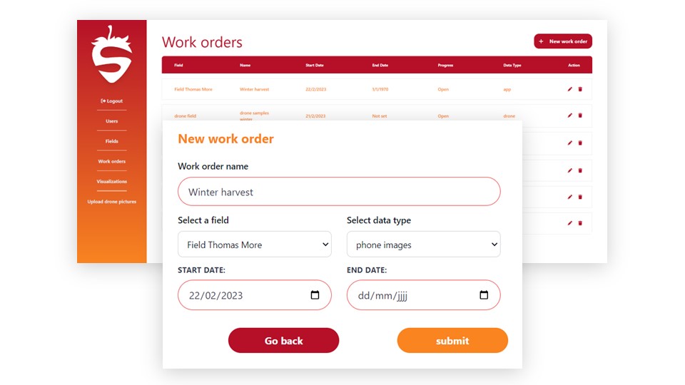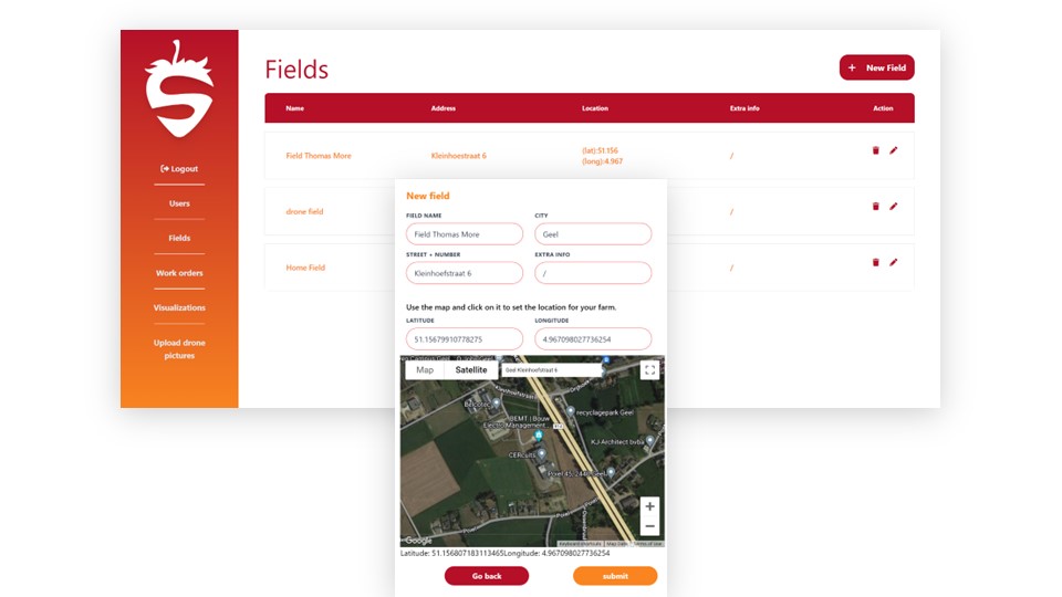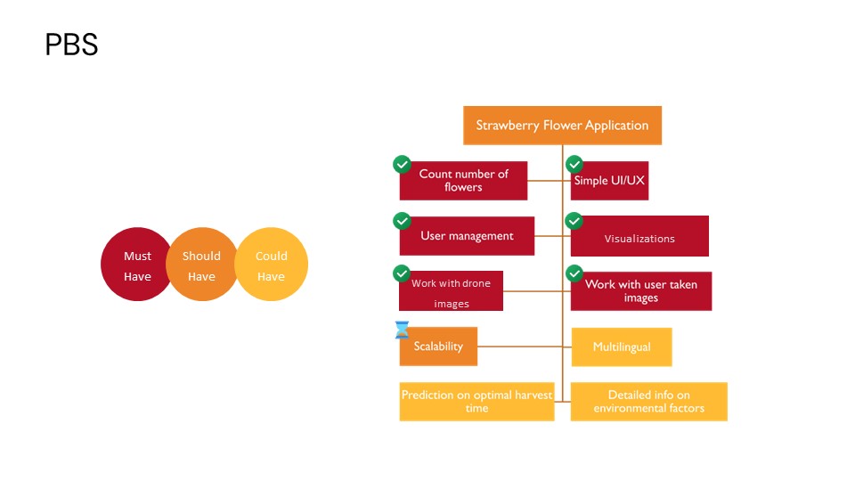Our interdisciplinary team comprised two APP students, two AI students, and two security students. We recognized the need for a solution that would enable farmers to make data-driven decisions to optimize their strawberry production. The way we think application will work is that the farmer can mark his fields on a map overlay. After that he can assign his workers to go take pictures of his field to gather data which our AI model will use to extract data from. It's also possible to upload drone data on the website and gather the relevant information from that source. After the data has been uploaded the farm owner can view it and make better decisions on how to better manage his farm. To ensure the project's success, we followed a structured approach. In the Ideation Phase, we established our team identity, defined project requirements, and created a comprehensive project plan outlining deliverables and timelines. The Concept Phase involved selecting the most suitable technologies for the project and developing a detailed implementation plan. Finally, in the Realization Phase, we adopted the agile scrum methodology, dividing the project into three two-week sprints. This iterative approach allowed us to maintain flexibility, adapt to changes, and ensure continuous progress.